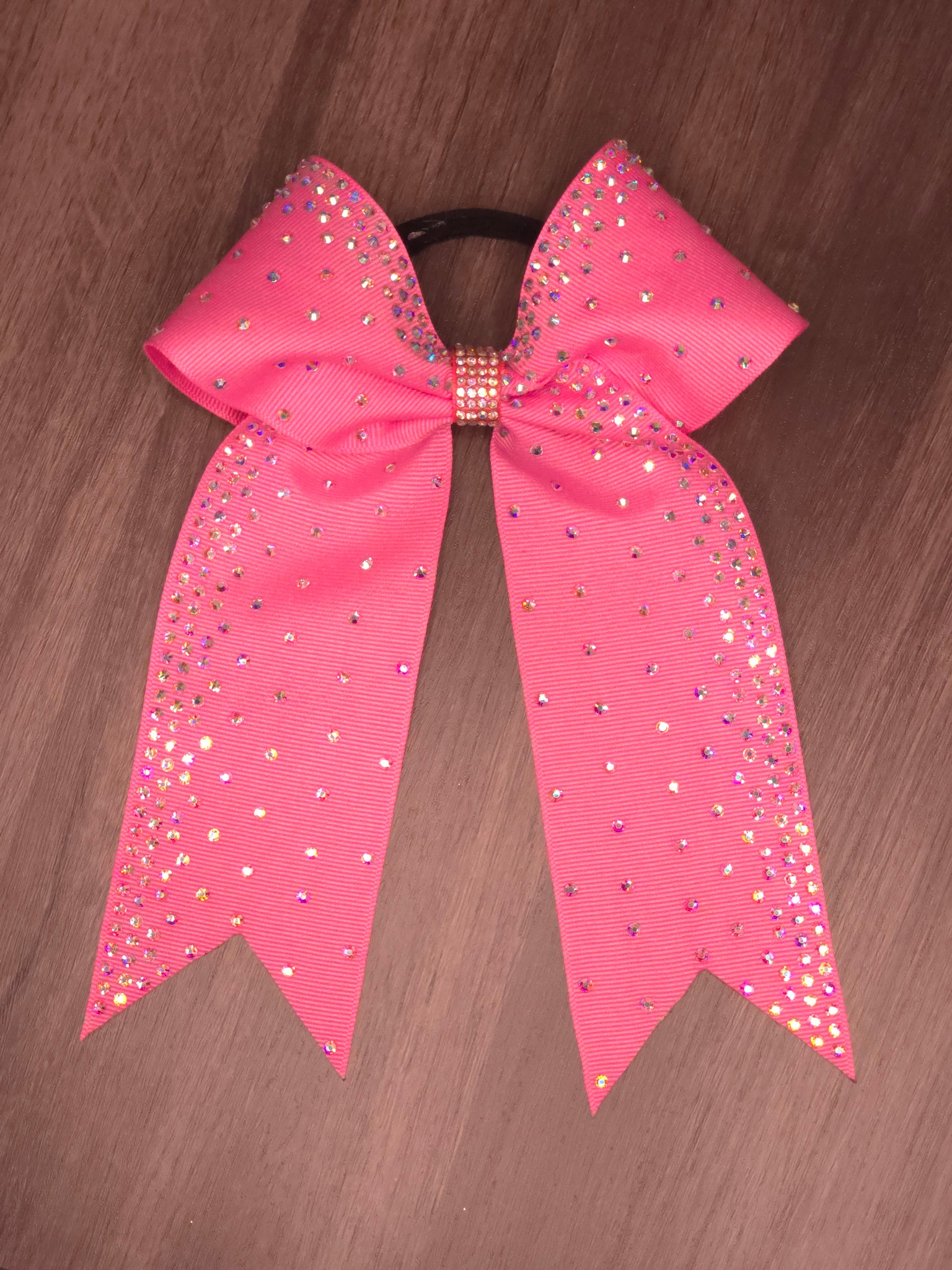 A collegiate style bow made with grosgrain ribbon and AB rhinestones.