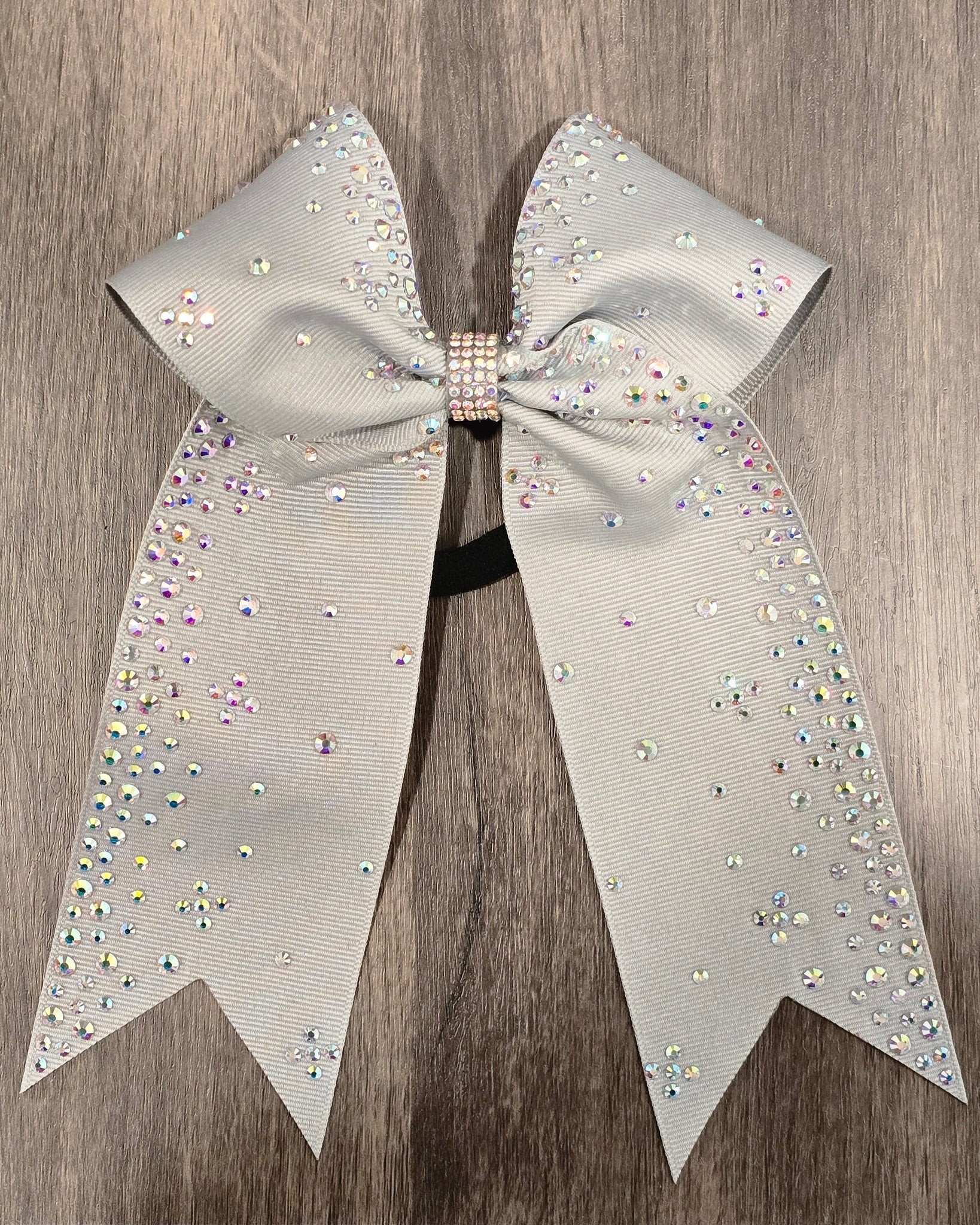A collegiate style bow made with grosgrain ribbon and AB rhinestones.
