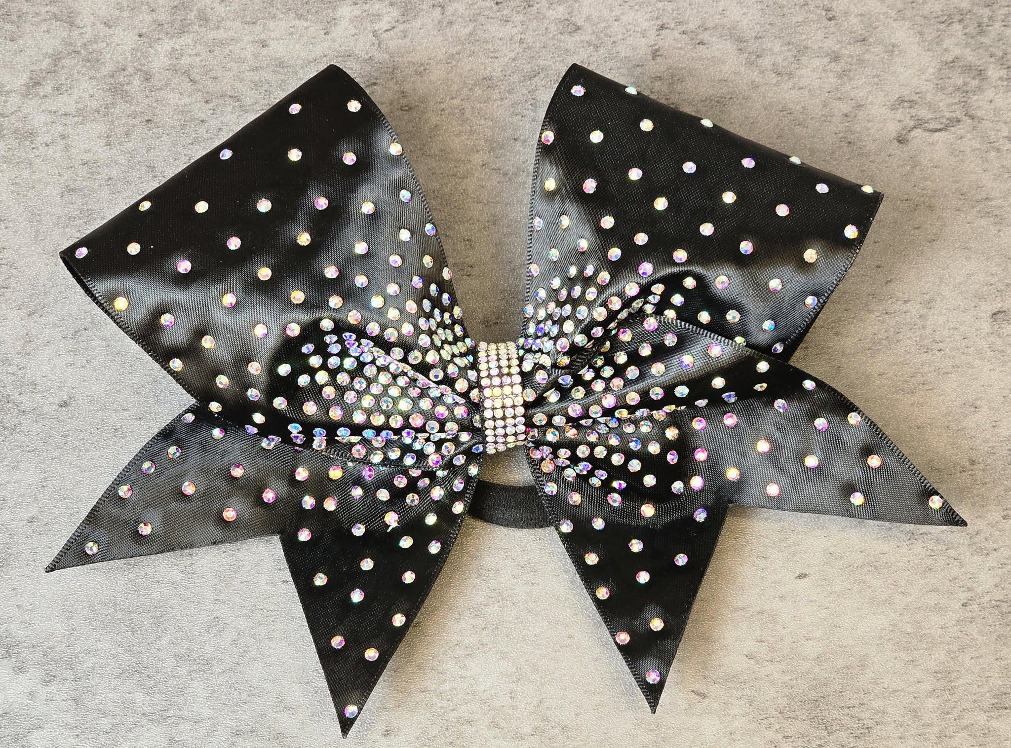 The Hailey bow is an ombre scatter of rhinestones on a satin base.